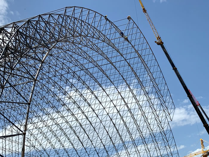 (2)网架加工前应对现场尺寸进行复测,确认无误后方可进行加工、安装;网架制作、运输、安装应遵守《空间网格结构技术规程》JGJ7-2010、《钢网架麻城螺栓球节点》JG/T 10-2009、《钢网架麻城螺栓球节点用高强度螺栓》 GB/T 16939-2016、《麻城钢结构麻城工程麻城施工规范》 GB50755-2012、《麻城钢结构麻城工程麻城施工质量验收标准》 GB50205-2020。